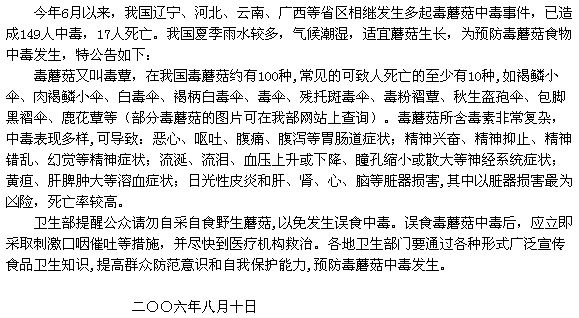 中華人民共和國衛(wèi)生部公告2006年第14號(hào)