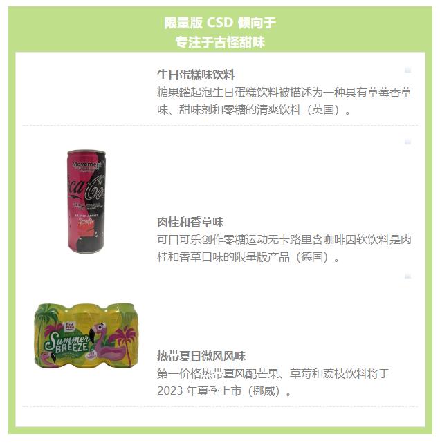 香精仍然是CSD市場的核心創(chuàng)新戰(zhàn)場,繼續(xù)使用新的香精和香精組合作為建立新奇和創(chuàng)新的一種配方設(shè)計方式。